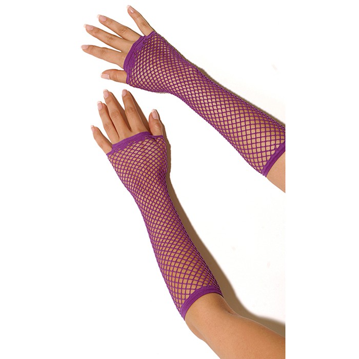 Фиолетовые длинные перчатки до локтя из сетчатого полотна. Пальчики полностью открыты. Отличное дополнение к любому сексуальному образу! Размер универсальный.