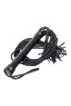 Плеть - кошка. 10 хвостов по 60 см цилиндрического плетения, жесткая оплетеная рукоятка длиной 21 см с кожаной петлей для кисти также цилиндрического плетения. Отличный девайс для средних и сильных воздействий, лучше всего подходит для воздействий на разогретой коже партнера.