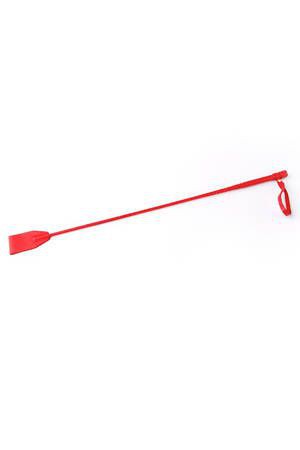 Стек красный плетенный. Состоит из деревянной рукояти и хлыста из гибкой полимерной основы, оплетённых натуральной кожей. На кончике хлыста имеется окончание в виде кожаного шлепка. Общая длина стека 70 см.